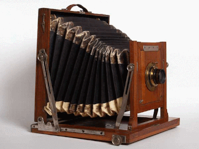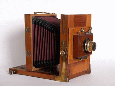 Apparecchio fotografico in legno di ciliegio da campagna, per il formato 13 x18 cm, tipo tail-board. Messa a fuoco su cremagliera. Decentramento verticale e orizzontale dell'ottica. Basculaggio verticale della standarda anteriore fino a circa 12°. Possibilità di rotazione di 90° della standarda posteriore. Soffietto piramidale in pelle rossa e nera. Costruzione o distribuzione: "La Barbera, via Roma 128, Napoli" (2). Dimensioni struttura in legno cm 29,8 x 17,4 x 24,5 (h). Peso con obiettivo Aplanat g. 1851. Otturatore tipo Thornton Pickard a tendina con velocità da 1/15" ad 1/90". Obiettivo Extra Rapid Aplanat. Serie H 13/18, f.1:8. Fine XIX secolo.