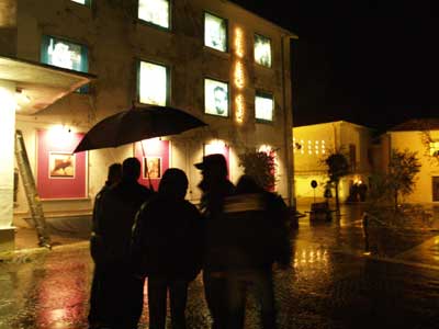 L’inaugurazione dell’installazione è avvenuta il 27 dicembre alle 19,00 in un evento in cui luci e musica diffusa hanno ritmato lo scoprimento ed il successivo primo illuminamento delle opere. La fitta pioggia ha reso oltremodo più suggestivo l'evento. |