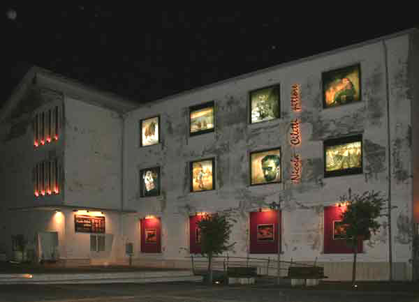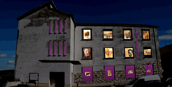 Sono incastonate nelle aperture del prospetto dell'edificio, dalle tipiche forme razionaliste, ubicato alla sommità del centro storico del paese. L’installazione vede, oltre la rivisitazione delle opere dell’artista, un intervento a “pelle” sul prospetto in cui si inseriscono le opere, sottolineato da lame di luce e pannellature. Un’installazione a scala urbana, dunque, che enuncia la valenza della produzione artistica di Nicola Ciletti (le opere interessate dall’installazione vanno dal 1904 al 1957) e, al tempo, intende sperimentare una formula per la trasformazione dell’impatto ambientale intrinseco in alcuni manufatti dei centri storici. |